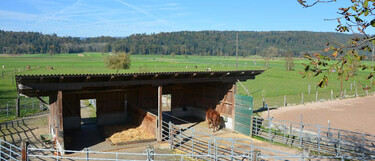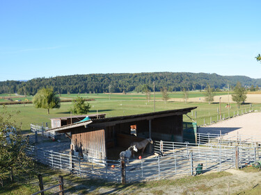 Damit sich das Pferd wohlfühlt, verfügen unsere Stallungen alle über viel Platz und einen grosszügigen Paddock . Die Kontaktpflege mit anderen Pferden ist stets gewährleistet. Ausserdem hat jedes Pferd seine eigene Weide. Der grosse Reitplatz (18x40 Meter) ist rund um die Uhr geöffnet und wird regelmässig planiert. Damit sich auch die Pferdebesitzer*innen wohlfühlen steht ihnen eine Sattelkammer, ein Picknickplatz und eine Toilette zur Verfügung.