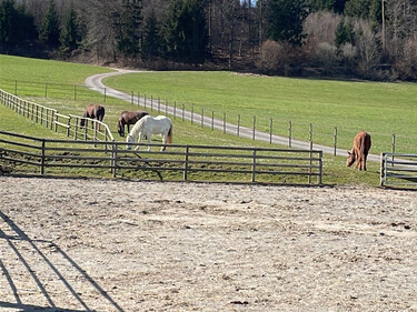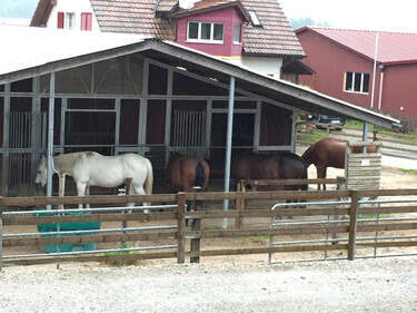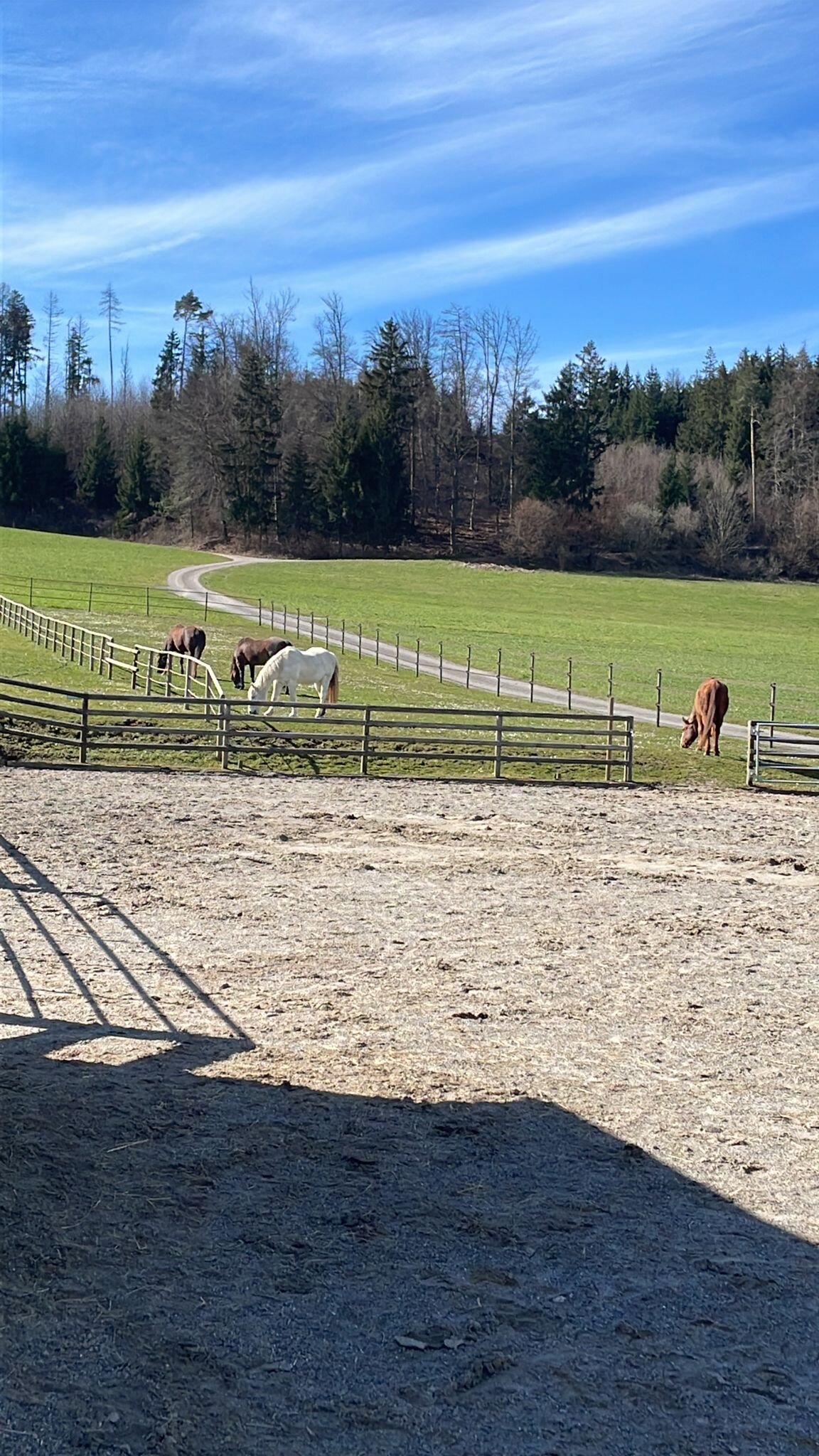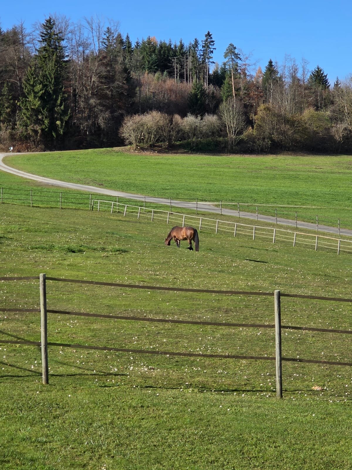 Platz frei auf Altersweide. Rund um die Uhr Video überwacht. 1.5 ha Offenlaufstall mit direktem Weidezugang. Die Pferde wählen selber ob Weide oder Stall. Heufütterung alles unter Dach, genügend Platz vorhanden, kein Gedränge. Gummimatten und Sägemehl Einstreu, keine nassen Stellen. Artgerechte Einzäunung, Ausläufe Ecoraster kein Match. Heu und Kraftfutter, Mineralien für eine altersgerechte Fütterung. Weiden und Ausläufe werden täglich abgebollt. Kleine Gruppe mit 4 Pferden ohne Eisen. Fachgerechte Betreuung von Daniela Bühler, dipl. Pferdepsychologin, ich freue mich über Deinen Anruf. Gerne zeige ich Dir die Offenstallanlage zum Wohle Deines Pferdes.