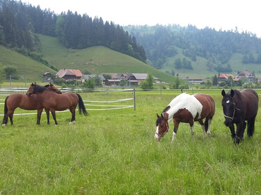 Ihr Pferd oder Pony darf jeden Tag ins freie (Befestigter Auslauf oder auf die Weide) und kann in einer Auslaufboxe oder einer Innenboxe untergebracht werden.