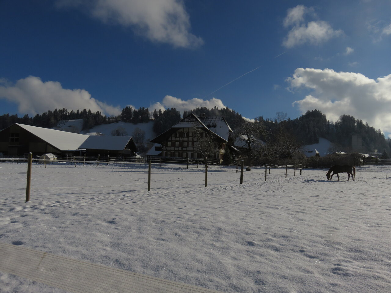 Ebenfalls frisst es entsaubtes Heu, zur Abwechslung auch Hylage und auf Wunsch Ihr mitgebrachtes Kraftfutter, welches wir bis zu 3x /Tag füttern.