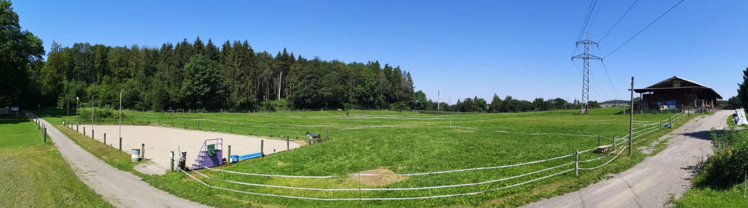 - Futterweiden und Auslaufmöglichkeiten im Sommer. Wenn es passt, teilen wir die Weide mit den Nachbarpferden