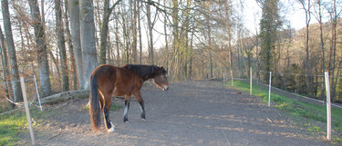 Wir bieten einen Pensionsplatz in einem Offenstall mit langem Trail. Unsere Pferde haben zwei grosse Ställe, eingestreut mit Holzpellets, die so unterteilt sind, dass auch rangniedere Pferde sich immer unterstellen können.Verschiedene Böden, sorgen für eine gute Hufgesundheit und Abwechslung. Auf dem Trail sind diverse Bäume, Sträucher, Lecksteine und Knaberholz verteilt. So dass die Pferde immer beschäftigt sind. Wir füttern 5 mal am Tag. Die Pferde haben somit keine Heu Pause von mehr als 3 bis 4 Stunden. Dazwischen bekommem sie immer mal wieder Stroh oder sie knabbern an den Ästen, Laub und Sträuchern. Es ist schön zu sehen, wie die Pferde immer beschäftigt und am wandern sin.Ein Viereck ist vorhanden.