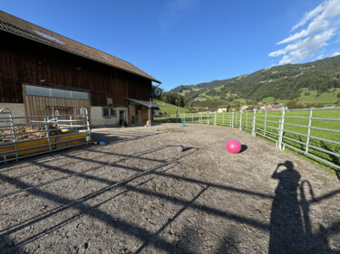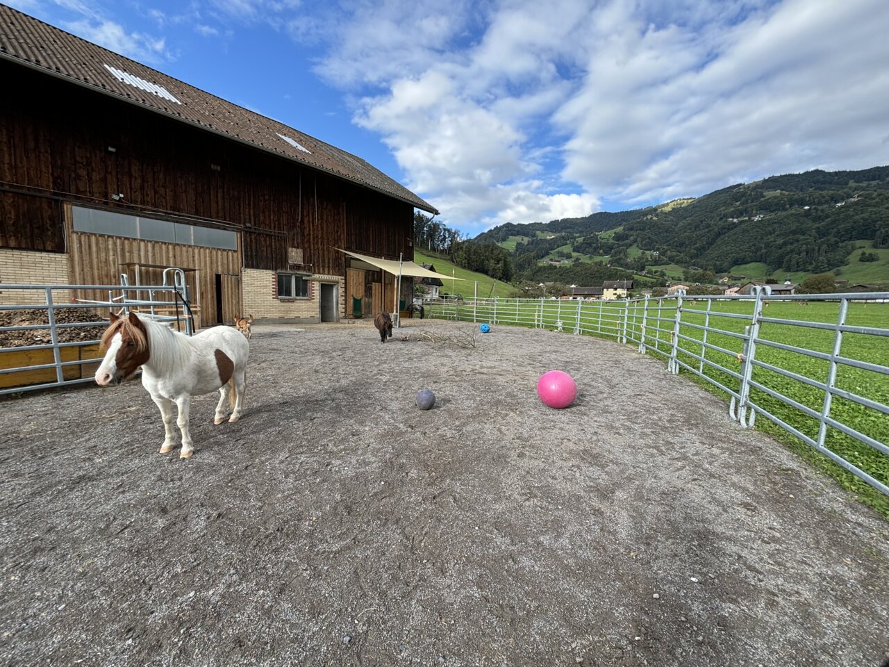 Wir haben zwei Gruppenplätze für Wallache zu vergeben.Unser familiärer Pensionsstall bietet 12 Pferden ein Zuhause, welches aus einem grosszügigen Gruppenstall für ca. 5 Pferde und 8 grossen Boxen (4x4m) mit Paddock (24m2) besteht. Die Gruppe hat eine Liegefläche im Stall und eine überdachte Liegefläche draussen, mit Stroh und Leinenstroh eingestreut. Die Weiden grenzen direkt an den Auslauf und sind, wann immer das Wetter es zulässt, offen. Wenn möglich weiden auch die Pferde in den Boxen in Gruppen.Zu unserer Infrastruktur gehören ein Reitplatz (800 m2), ein überdachter Waschplatz mit Warmwasseranschluss, Solari1um, Sattelkammer mit grossen Sattelschränken, ein Trockenraum für die nassen Sachen und ein Reiterstübli. Wir füttern 4 mal täglich unser selbst hergestelltes Heu.Auf unserem Landwirtschaftsbetrieb, den wir nach den Bio Suisse Richtlinien bewirtschaften, produzieren wir unseren gesamten Futterbedarf selber. Dass wir nur qualitativ hochstehendes Futter verabreichen, ist für uns selbstverständlich.