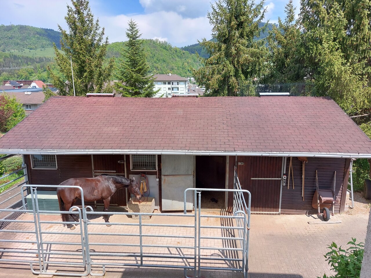 Zu vermieten in Lausen per sofort oder nach Vereinbarung einen Pferdestall mit 2 Boxen, Futterraum, Sattelschrank, Paddock (Paddock auf die beiden Boxen teilbar) und Weide an Selbstversorger. Preis für den ganzen Stall CHF 500/Monat. Standort: unterhalb Reitsportzentrum Galms bzw. am Rand der Landwirtschaftszone.