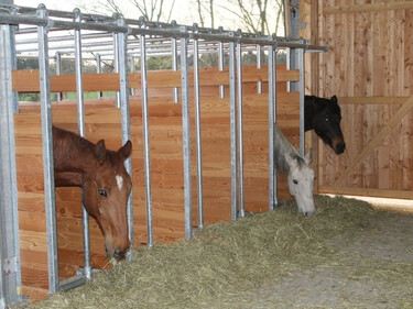 Altersweide im Offenstall für Rentnerpferde
