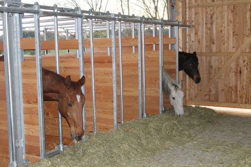 Dank frei zugänglicher Fressstände kann jedes Pferd in seinem eigenen Tempo und ohne Stress fressen. Die weitläufigen Weiden stehen ganztägig zur Verfügung.