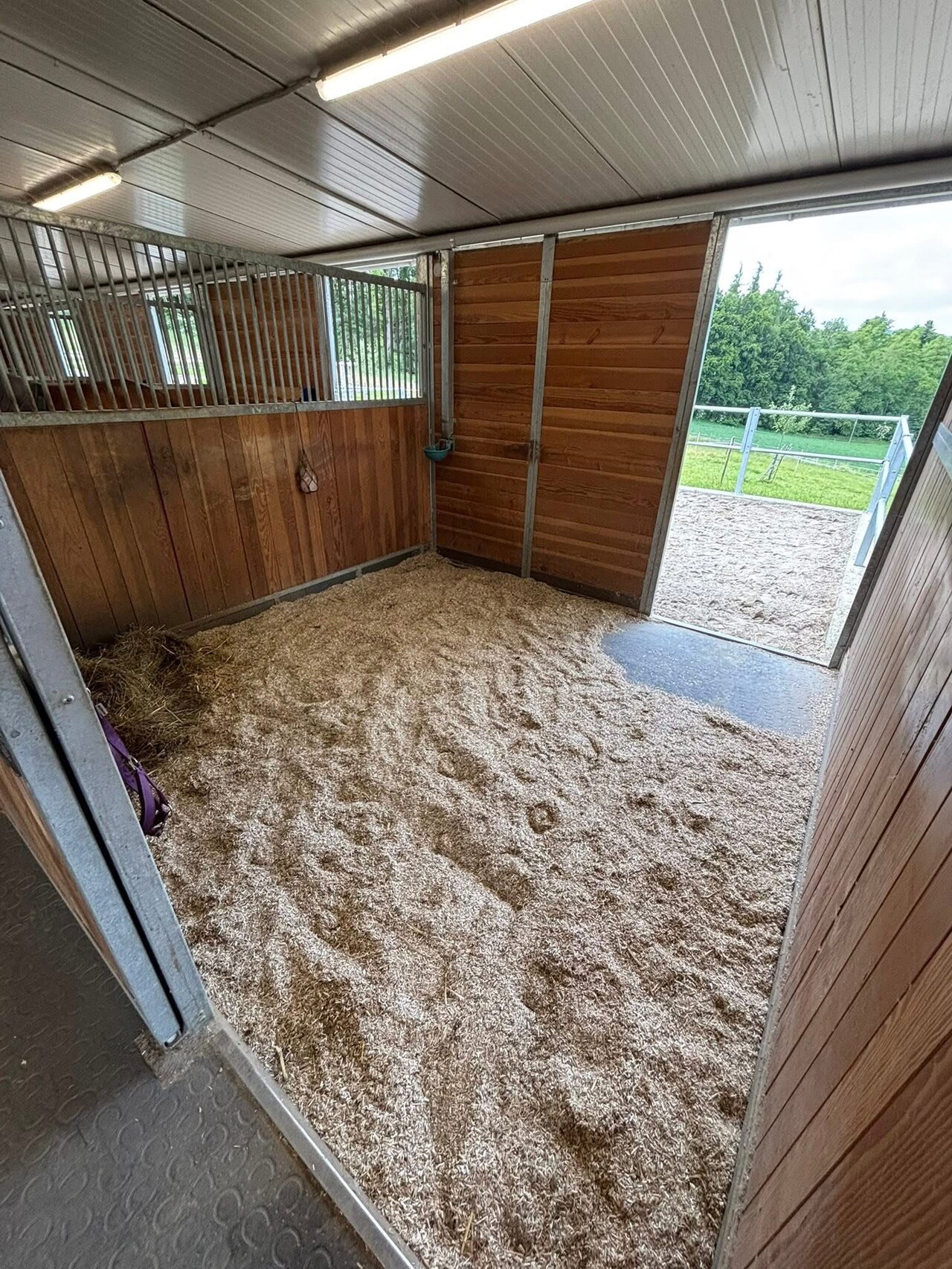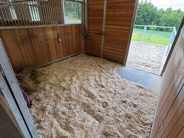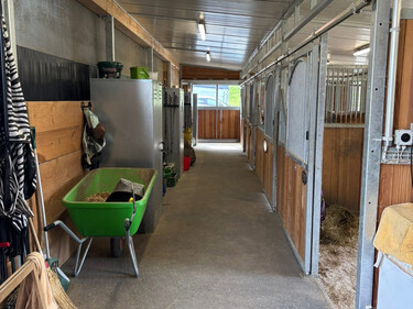 - Grosszügige, helle Auslaufboxen (12m2 Box + 25m2 Auslauf), Hanfeinstreu
