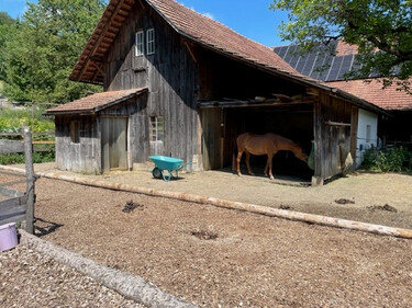 Idyllisch gelegener Privatstall in Stadtnähe mit Privat Viereck. 24 Stunden liebevolle persönliche Betreuung. Heunetzfütterung 4x täglich.