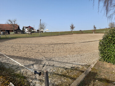 Gleich hinter dem Pferdestall befindet sich ein Sandviereck, 20 x 40 m gross und beleuchtbar.