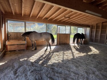 • Allergikerfreundliche Haltungsbedingungen – Heulager extern, Einstreu staubfrei, Haygain