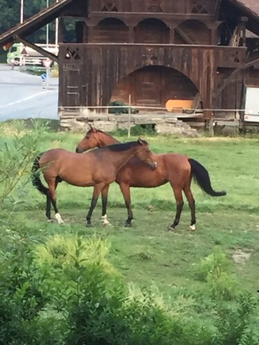 Dazu gehört selbstverständlich drei mal täglich füttern, eine grosszügige Einstreu mit Stroh, Pferde auf die Weide und zurück führen, im Winterhalbjahr je nach Temperatur abdecken und wieder decken, wenn die Weiden zu nass sind wird Ihr Pferd von uns täglich in die Führanlage geführt. Ausserdem können wir Ihnen den Hufschmid/Hufpfleger, Pferdezahnarzt, Pferdearzt(hoffentlich nie nötig) organisieren. Das alles im Preis inbegriffen!!!