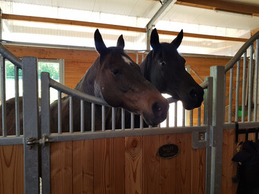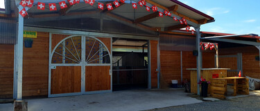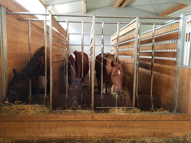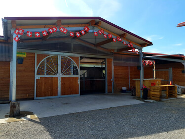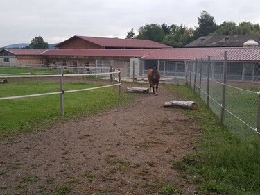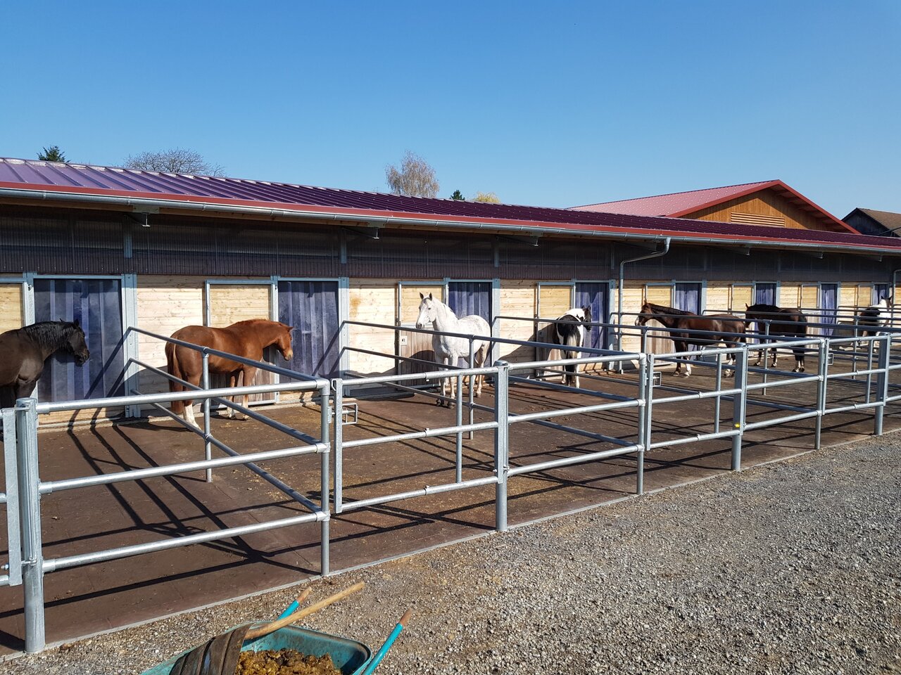 Unsere Anlage ist 2017 eröffnet worden und liegt am Fusse des Rietenberges, welches auch unser Haupt Ausreitgebiet ist. Es ist sehr vielseitig, man kann sich Stundenlang verweilen, auch der Eichberg ist ein schönes Ziel und verleitet zum einkehren ein. Das Bünztal ist für die flachen Ausritte zu empfehlen, man kann zahlreiche Wege erkunden. Wir sind ein top motiviertes, herzliches und engagiertes Team, dass sich sehr gerne um das Pferd und seine Bedürnisse kümmert. Natürlich kommt der Besitzer nicht zu kurz, bei uns kannst du Energie tanken und die Batterien aufladen. Wir bieten folgende Leistung an: Heu, 24 Stunden 3x Ausmisten Waldbodeneinstreu Grosse Gruppenweide Ebbe-Flut Sandplatz 20m x 40m, mit Flutlicht Hindernis-Material, Equikinetic, Einhörner.... vorhanden Roundpen, mit AS Ground, beleuchtet Laufband Springwiese ab 2021 4 gedeckte Waschplätze mit temperiertem Wasser Persönlicher Sattelschrank WC/ beheizt Solarium Gemütliches Reiterstübli/ im Sommer eine kleine Lounge Separater Trocknungsraum für Decken, Schuhe... Anhänger Parkplatz Reithalle in der Nähe, mit Auto ca. 8 Min. Angenehmes und nettes Stallklima die Anlage ist bewohnt Preis 1050 Fr. Der Weidegang ist von April-Oktober, der permanente Auslauf ist 24 Stunden 365 Tage offen. Bei Fragen, oder Besichtigung des Stalls, nehmen wir uns sehr gerne Zeit für Sie. Wir freuen uns schon sehr auf Ihren Besuch und hoffen Sie und Ihr 4- Beiner schon bald bei uns begrüssen zu können. Sabine & Martin Koch 079 253 68 00 079 795 49 90