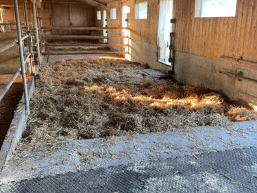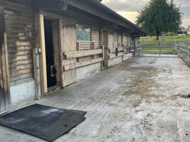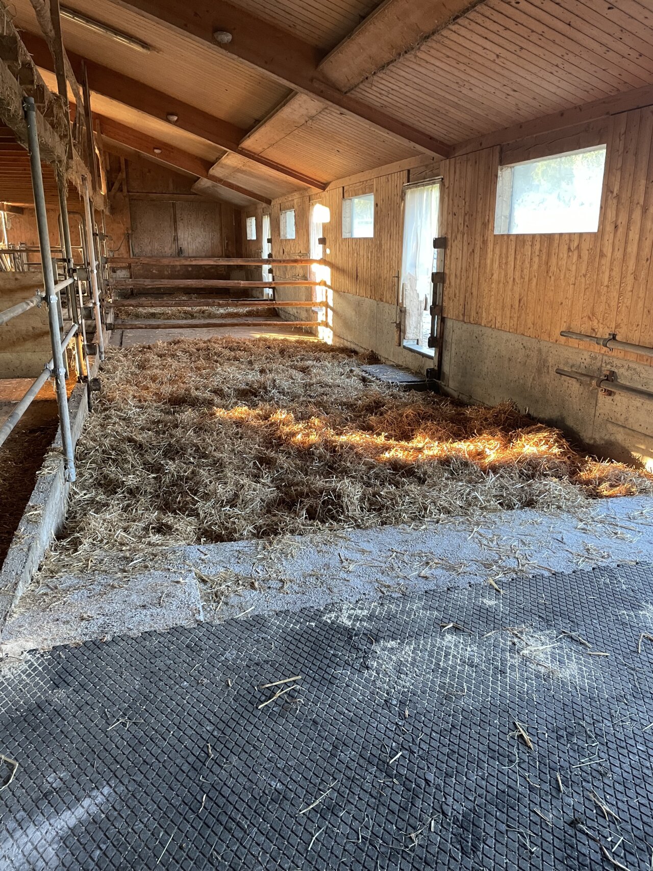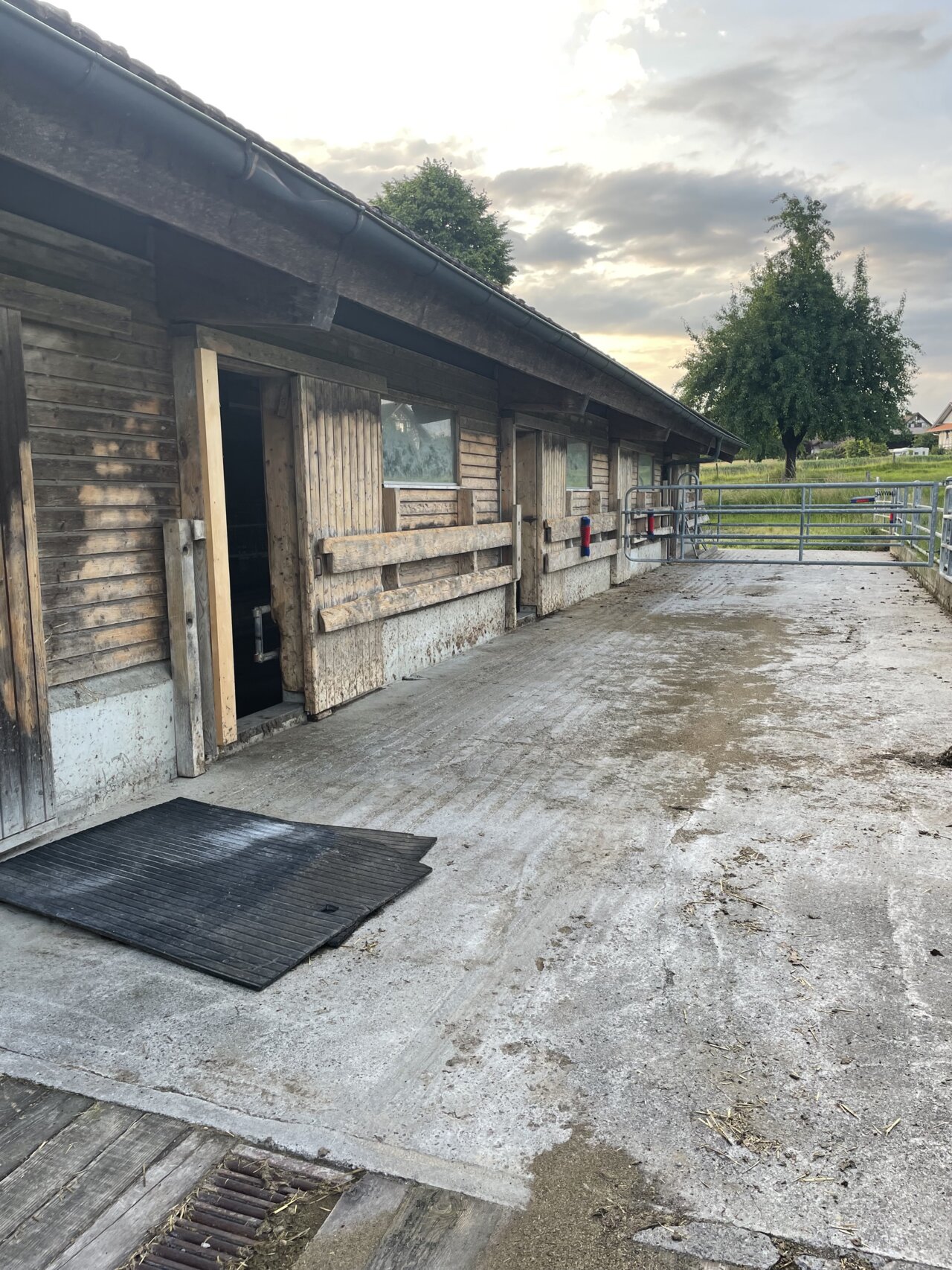 Wir füttern mit gutem Heu aus eigener Produktion durch Heuautomate und Fressstände. Einstreu ist Stroh, auch aus eigener Produktion. Deshalb können wir das Plätzli auch für einen grosszügigen Preis anbieten. Die Pferde können, wenn keine grosse Rutschgefahr besteht grundsätzlich ganzjährig auf die Weide.