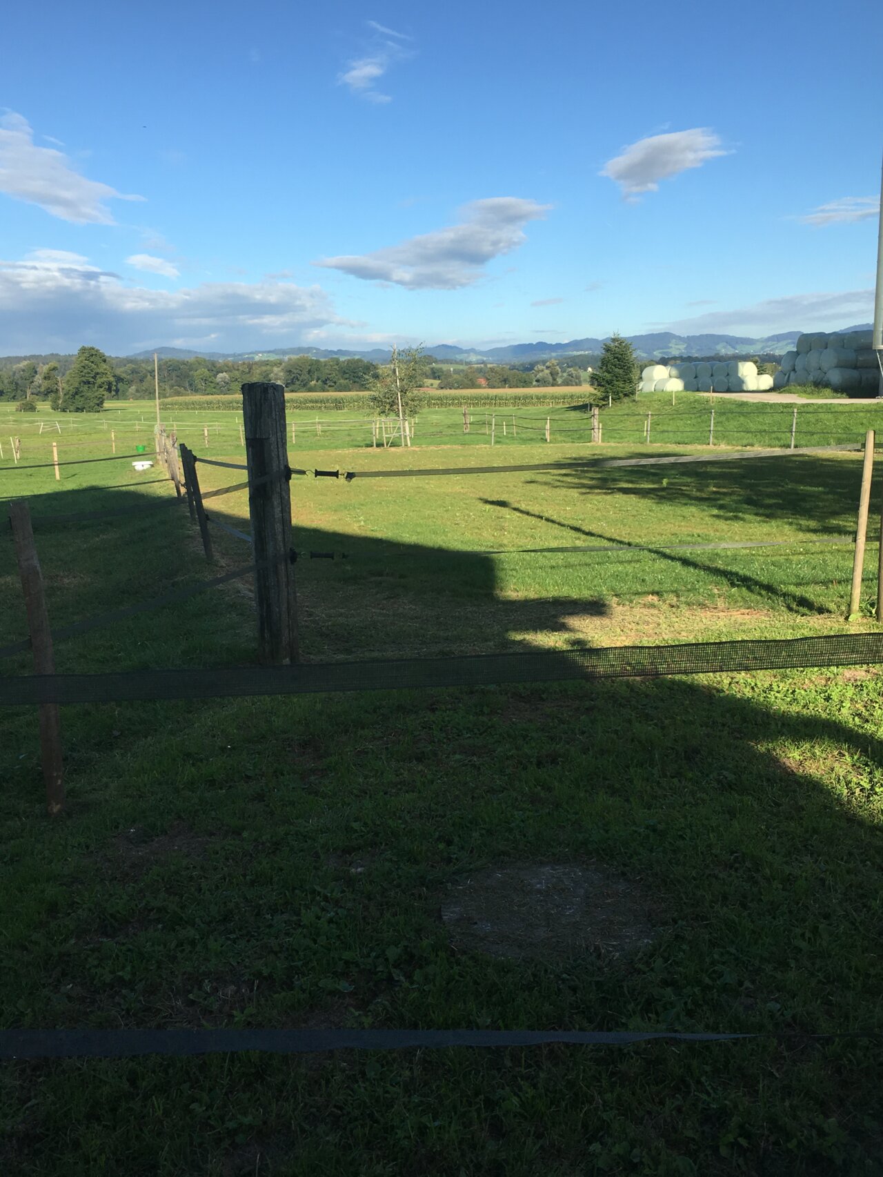Grosszügige Weideflächen und ein begrünter Allwetterplatz bieten unseren Pferden Auslauf und Bewegung. Die Reithalle Oertli ist in Reitdistanz.