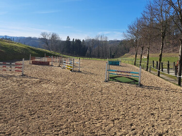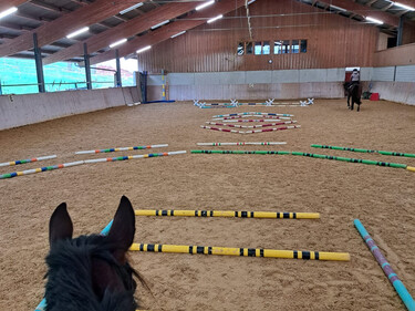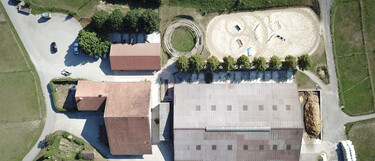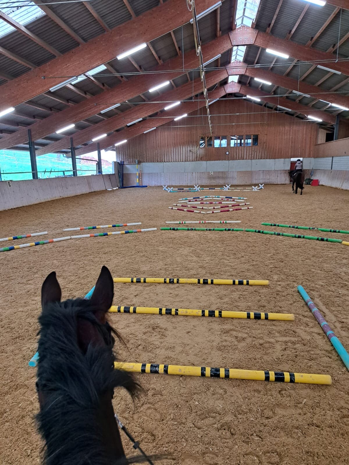 Unser Stall bietet mit einer Reithalle, einem Sandplatz und einem grossen Springplatz tolle Trainingsmöglichkeiten. Ergänzend zu unseren Weiden und Ausläufen haben wir noch eine Führanlage.