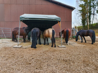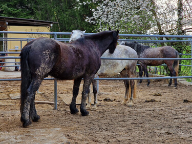 Bei uns steht das Pferdewohl an oberster Stelle und wir sind bestrebt für alle Lebewesen individuell die besten Lösungen zu finden und umzusetzen. Bei uns finden max. 12 Pferde ein Zuhause. Je nach Herdenzusammensetzung in einer grossen, gemischten Gruppe oder auch (zeitweise) in kleineren Gruppen getrennt.