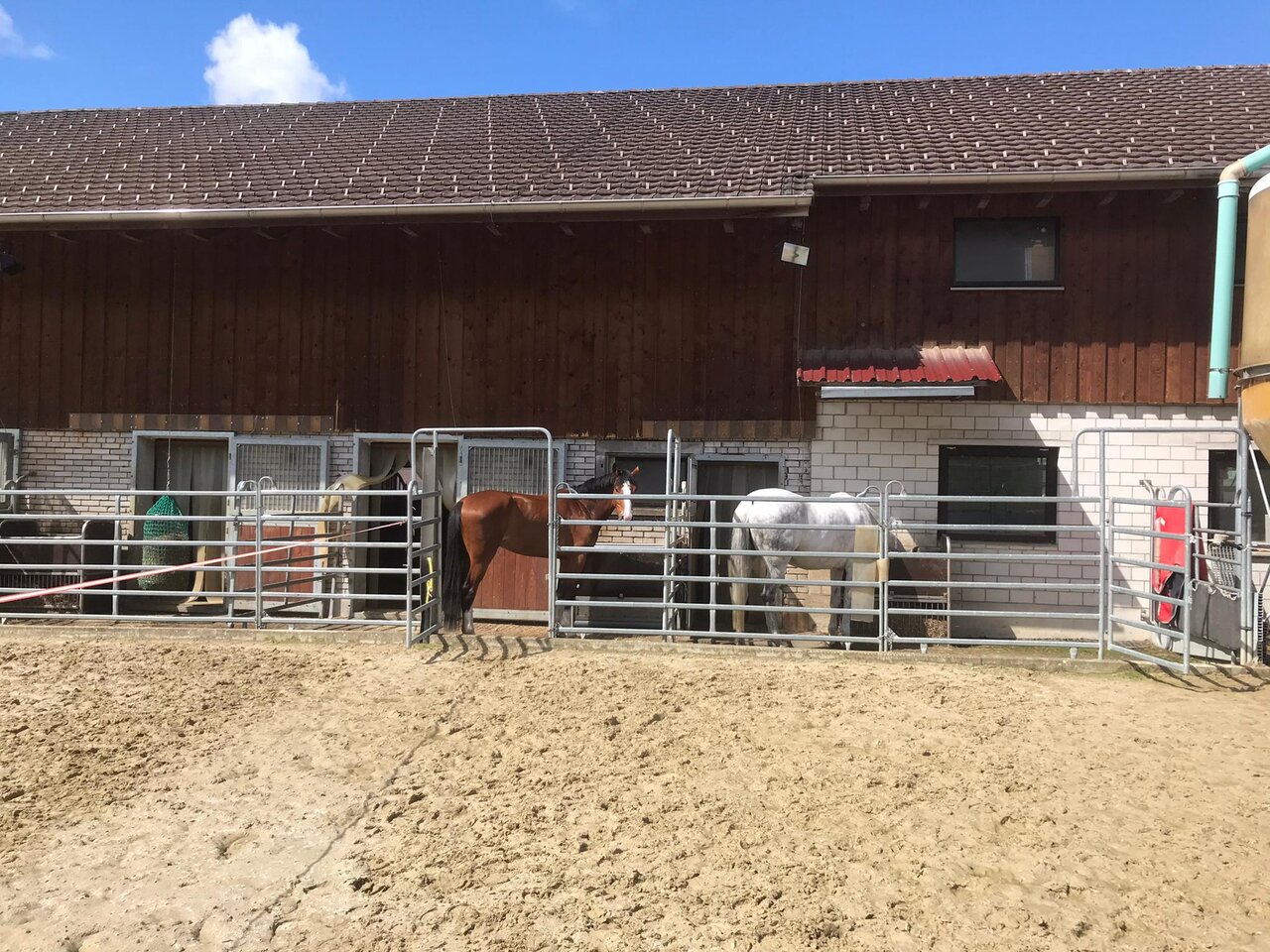 Auslaufboxe mit direktem Zugang zu Sandplatz (ca. 150 m2 pro Pferd)
