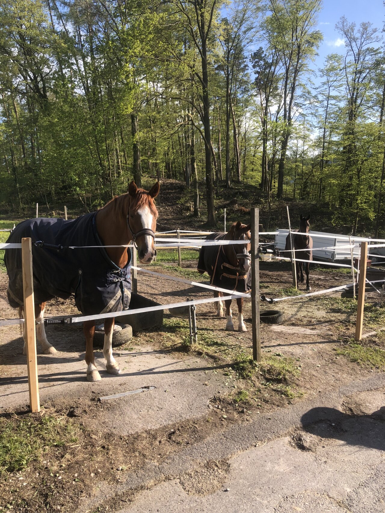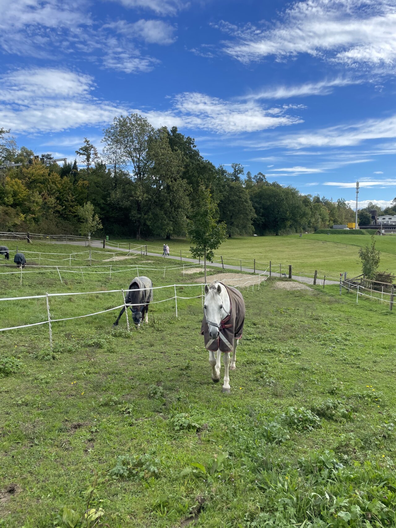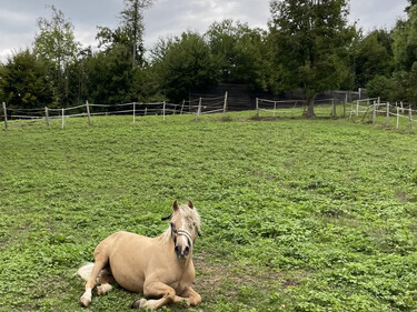 Die Pferde genießen täglich frische Luft: Morgens gehen sie auf die Allwetter-Paddocks oder, je nach Wetterlage, auf die eigene Weide, wo sie den ganzen Tag bis zum Sonnenuntergang draußen verbringen können. Auf Wunsch und je nach Eignung können die Pferde auch gemeinsam auf der Weide stehen.