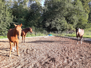- Schnitzelplatz 18 x 18m als Teil vom Auslauf und auch für BA / Longieren geeignet