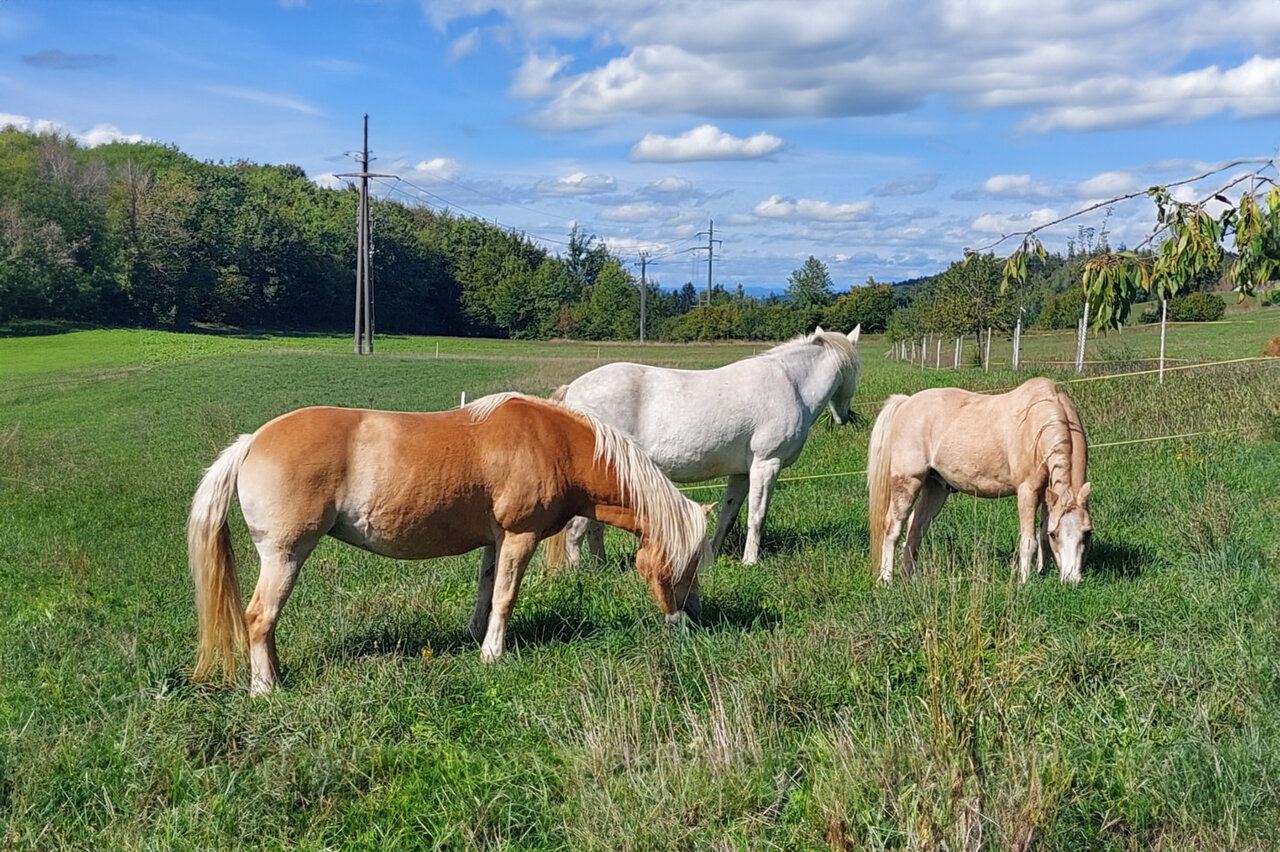 In unserem Offenstall mit Paddocktrail in Zufikon leben zehn Pferde und Shettys in einer gemischten Gruppe. Wir legen grossen Wert auf artgerechte Haltung und auf ein freundliches Stallklima und Miteinander. Direkt angrenzend bieten grossflächige Weiden weite Auslaufmöglichkeiten für die Tiere. Wir betreiben unseren Hof gemäss Bio-Richtlinien und sind bio-zertifiziert.
