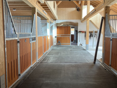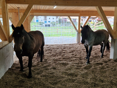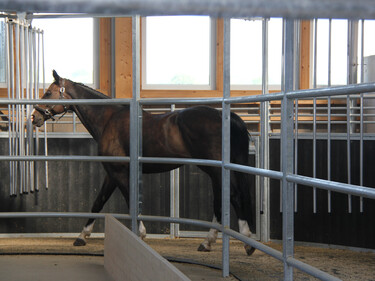 Wir vermieten in unserer Reitanlage mit Reithalle 25 x 50, Aussenplatz, Roundpen / Lonzierzirkel und sehr schönem Reitgelände 2 grosse Auslaufboxen.
