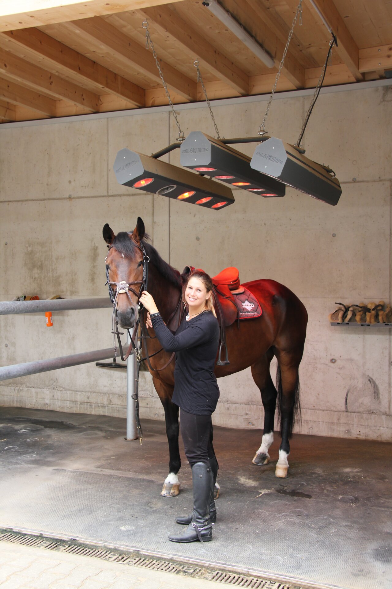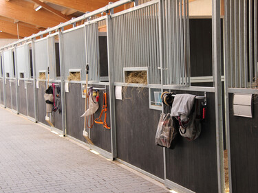 Wir bieten: saubere, gepflegte Infrastruktur mit qualifiziertem Fachpersonal Grosse Auslaufboxen – die Hälfte des Auslaufes ist überdacht geräumige Waschboxen mit warmem Wasser Solarium grosse saubere Sattelschränke in beheizter Sattelkammer behindertengerechtes WC mit Dusche Waschservice auch für grosse, schwere Decken.