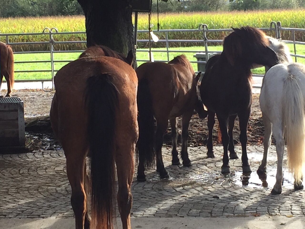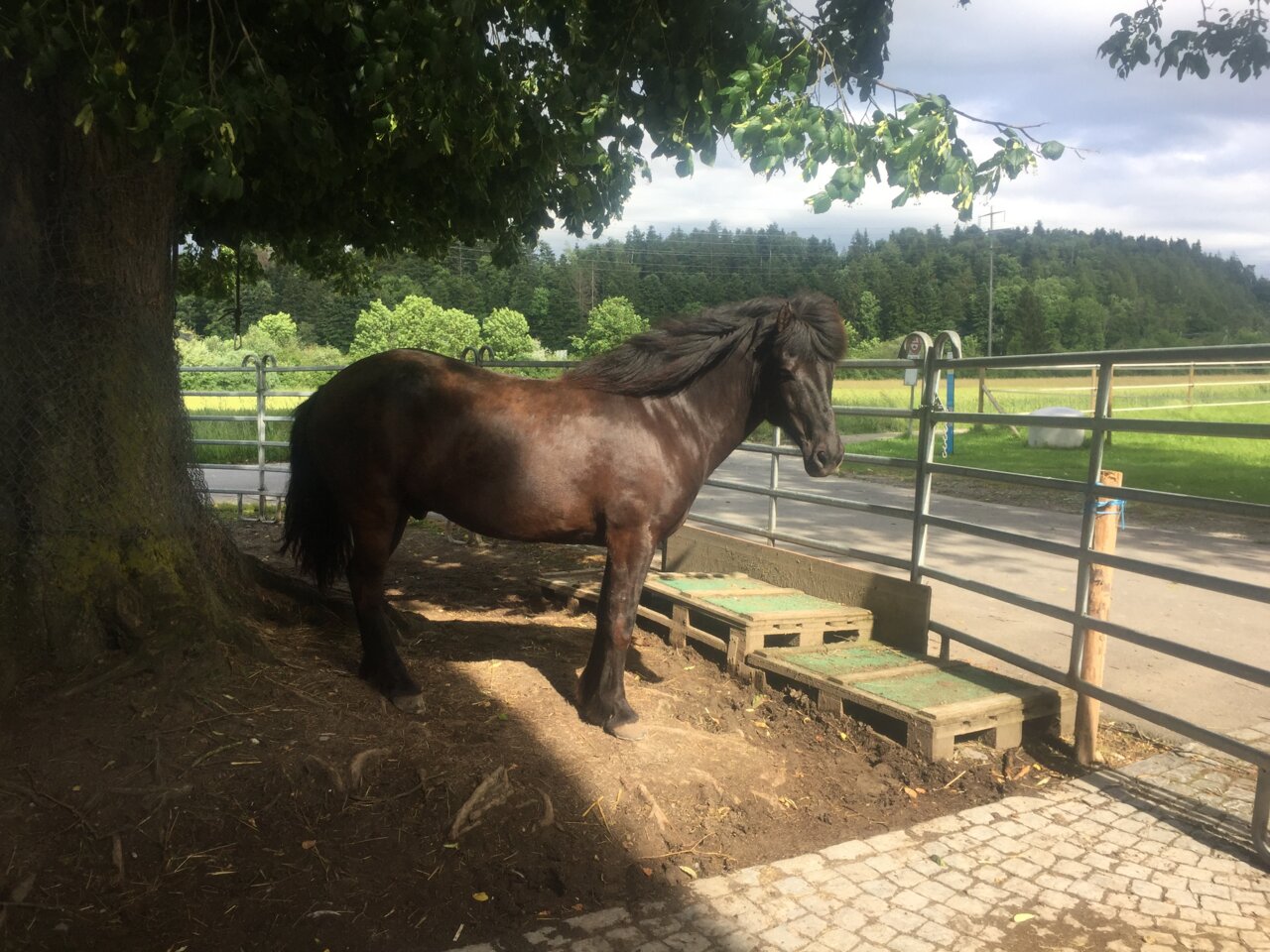 Unser Mehrraum-Laufstall bietet Platz für 10 Pferde bis max. Stm. 1,58. Wir bieten 24h Heu im Netz an verschiedenen Futterplätzen, 2 Liegeflächen (Stroh, Waldboden), Integrationsbox zum Eingewöhnen. Weidegang auf grosszügige Weiden den Witterungen angepasst, aber möglichst täglich. Abwechslungsreiches Reit/Spaziergebiet. Kleiner, einfacher Sattelraum mit Kaffeemaschine und "Schnousichiste", Futterabstellkammer, WC . Zur Zeit steht uns ein Weidestück von ca. 12x12m für Bodenarbeit,... zur Verfügung.