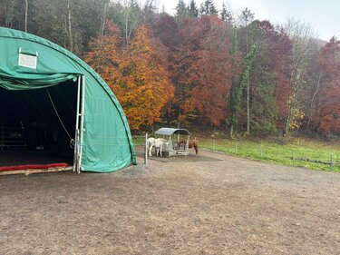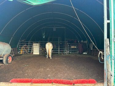 neuwertiges Rundbogenzelt mit 100qm (derzeit abgeteilt für Futterlager und Sattelkammer)