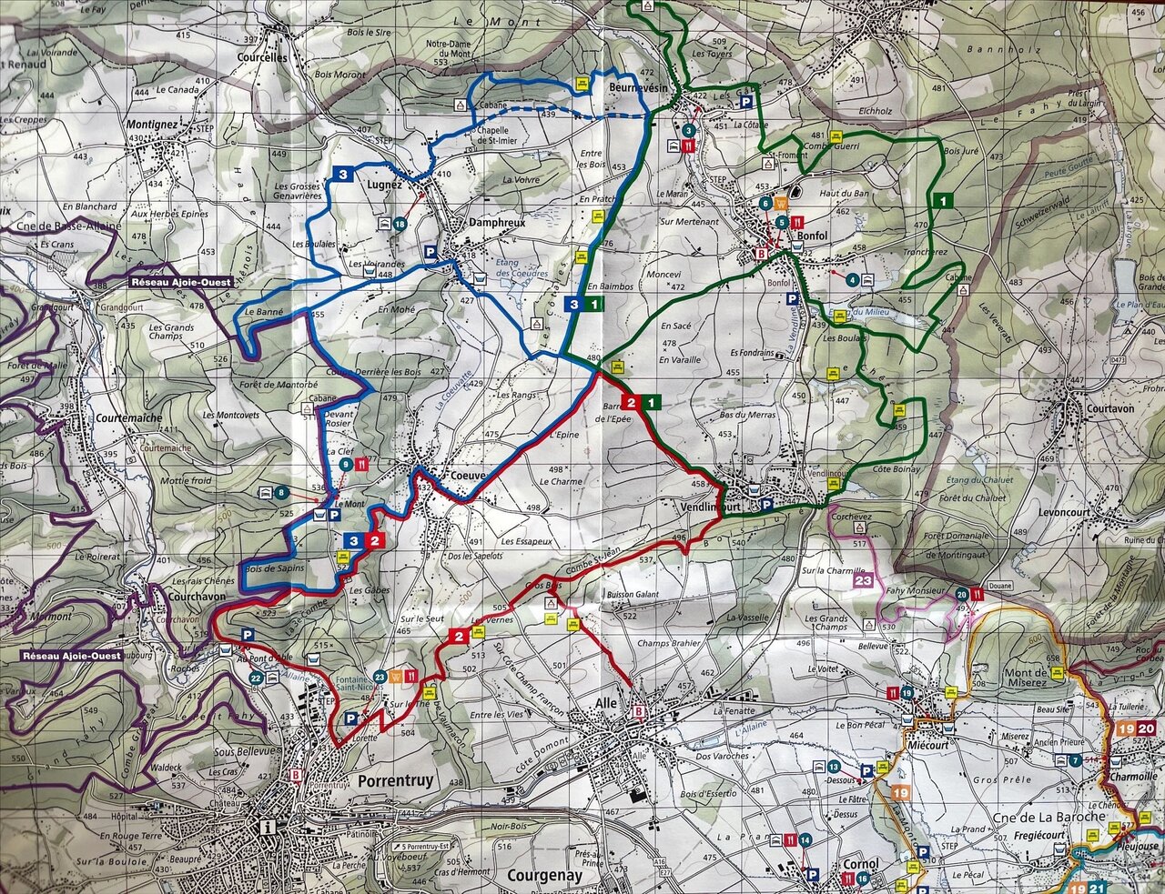 Die Walden Ranch liegt direkt am neu erstellten Reitwegnetz Ajoie-Est mit mehr als 240km Reitwegen (Routen 1, 2 & 3).